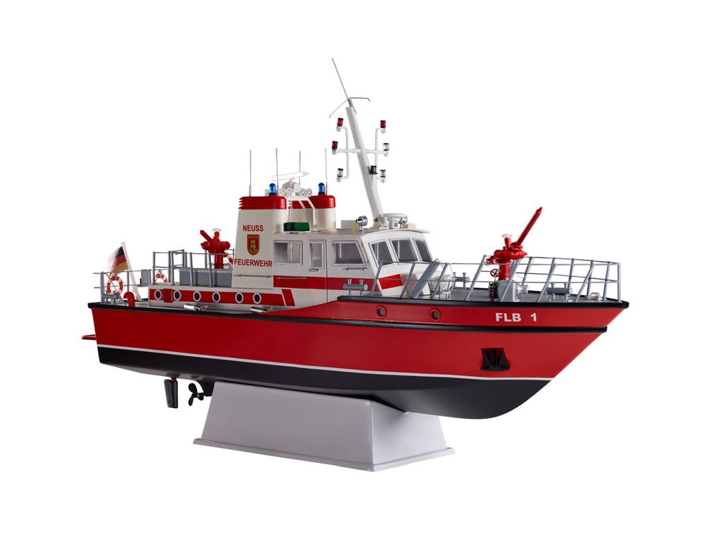 Stavebnice RC modelu lodi na dálkové ovládání od firmy ROMARIN, hasičská loď FLB-1 kit. Vzorem loď FLB-1 na řece Rýn, pro účely požární a záchranné služby. Obsahuje plastové díly trupu a paluby a interiéru, dřevěné součásti, výkres, lodní šroub, maketové díly a drobné stavební příslušenství.