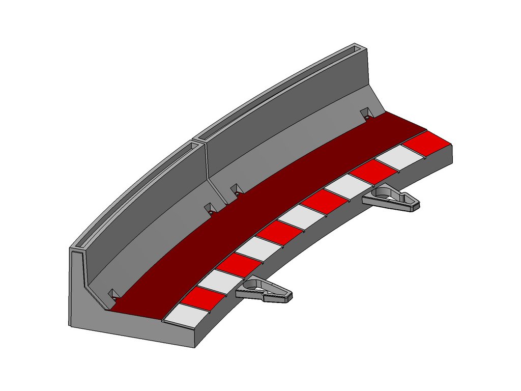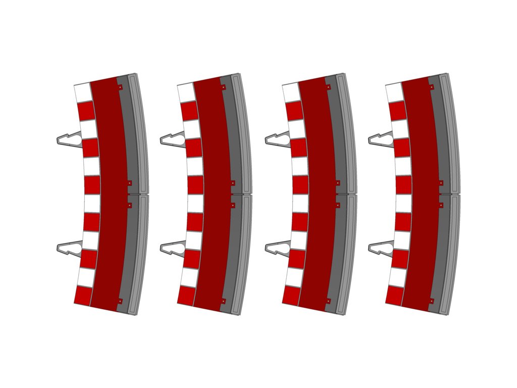 Krajince s mantinely pro vnější oblouk R3 autodráh SCX 1:32. Balení obsahuje 4 kusy krajnic s mantinely.