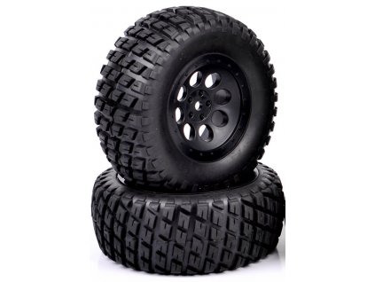 Kompletní kola 2ks vhodná například pro modely typu Short Course (ale i jiná) v měřítku 1:10. Rozměry kol jsou 107x43mm a maji standartní unašeč kola 12ti milimetrový 6ti hran.