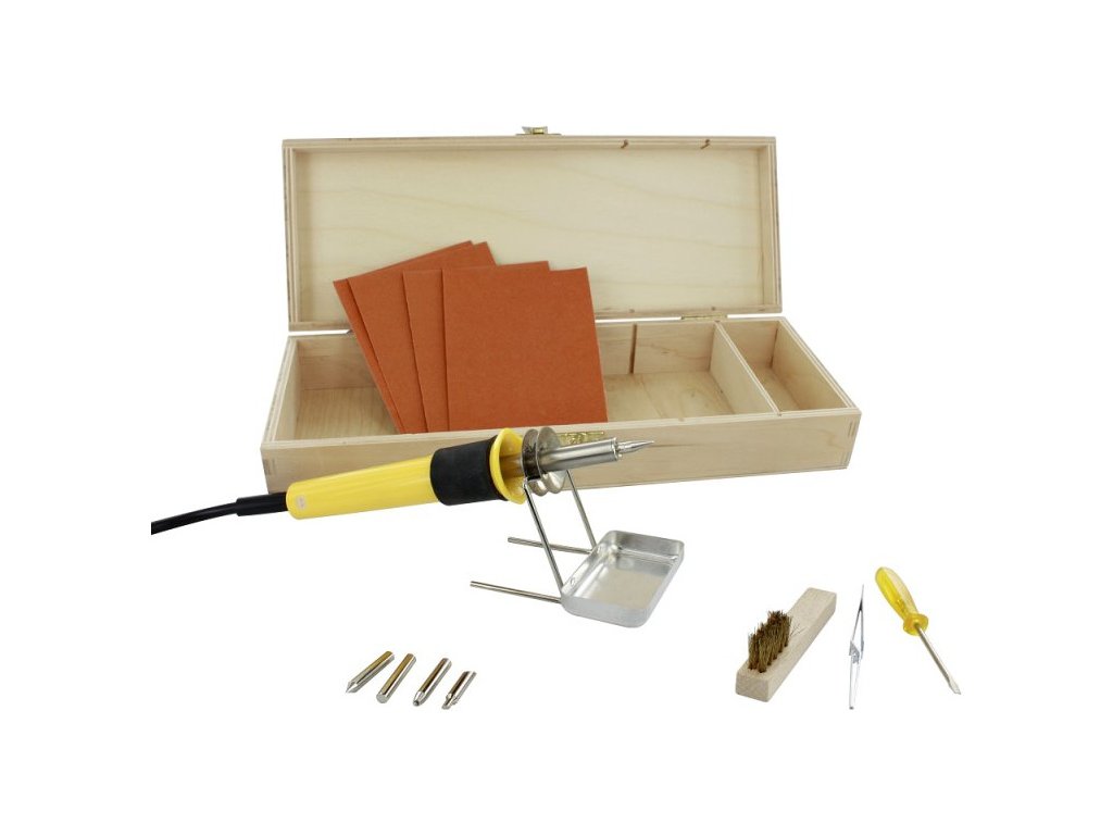 Základní pyrografická sada pro vypalování obrazců do měkkého dřeva, kůže a podobných vhodných materiálů. Celkem 13 dílná sada obsahuje vše potřebné.