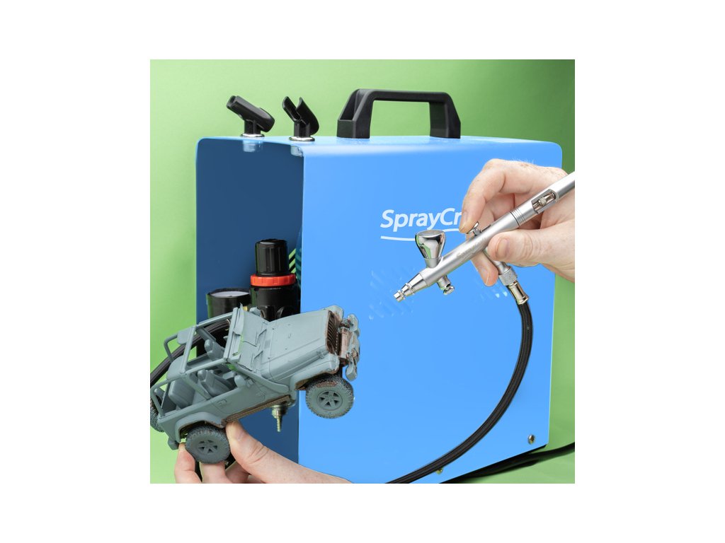Výkonný kompresor Spraycraft Pro Airbrush s tlakovou nádrží o objemu 3 L, je kompaktní, tichý a poskytuje konzistentní proud vzduchu s integrovaným regulátorem tlaku a odlučovačem vlhkosti. Ideální pro všechny vaše potřeby v oblasti airbrush, stačí připojit stříkací pistoli (prodává se samostaně)!