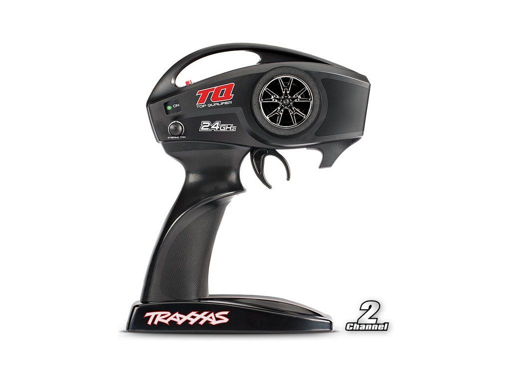 Model je řízen dvoukanálovou proporcionální volantovou RC vysílačkou Traxxas TQ, pracující v pásmu 2.4 GHz - provoz bez rušení. Vysílač je napájen pouze 4 AA články.