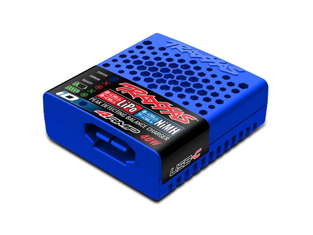 Traxxas nabíječ USB-C s maximálním výkonem 40W je určen pro nabíjení Traxxas akumulátorů 2-3S LiPo, nebo NiMH (7.2-8.4 V) s konektorem iD. Nabíječ automaticky rozpozná typ baterie Traxxas iD a sám nastaví optimální parametry pro rychlé a spolehlivé nabíjení. Pro napájení nabíječe doporučujeme použít výkonný USB adaptér a propojovací USB-C kabel.