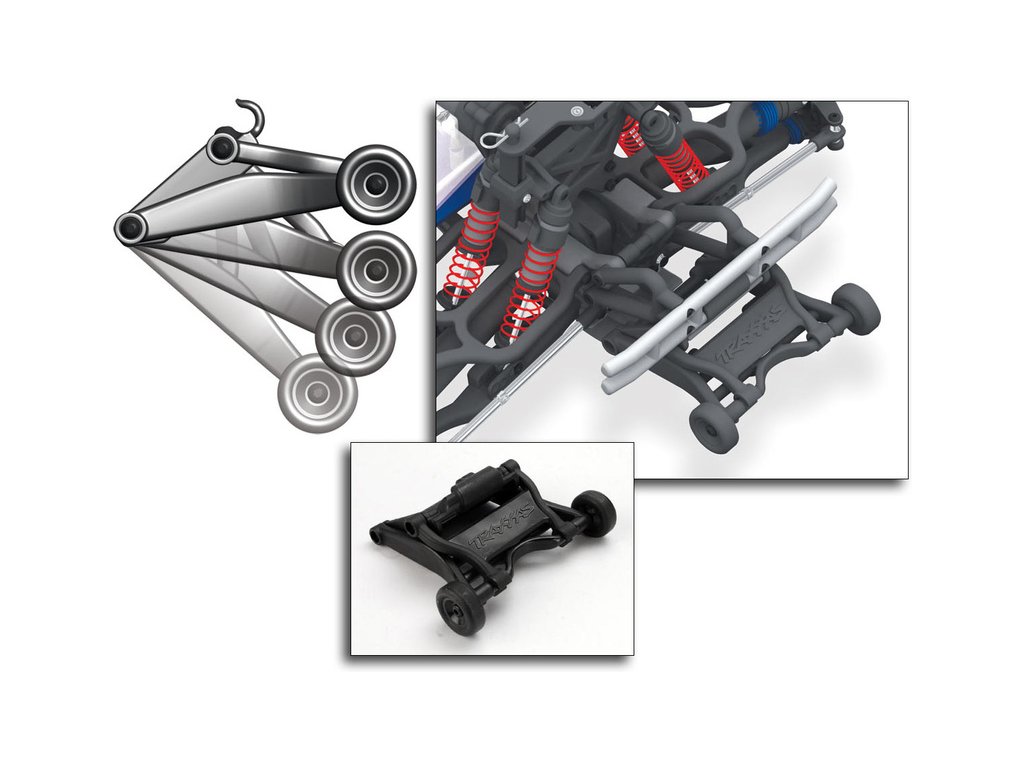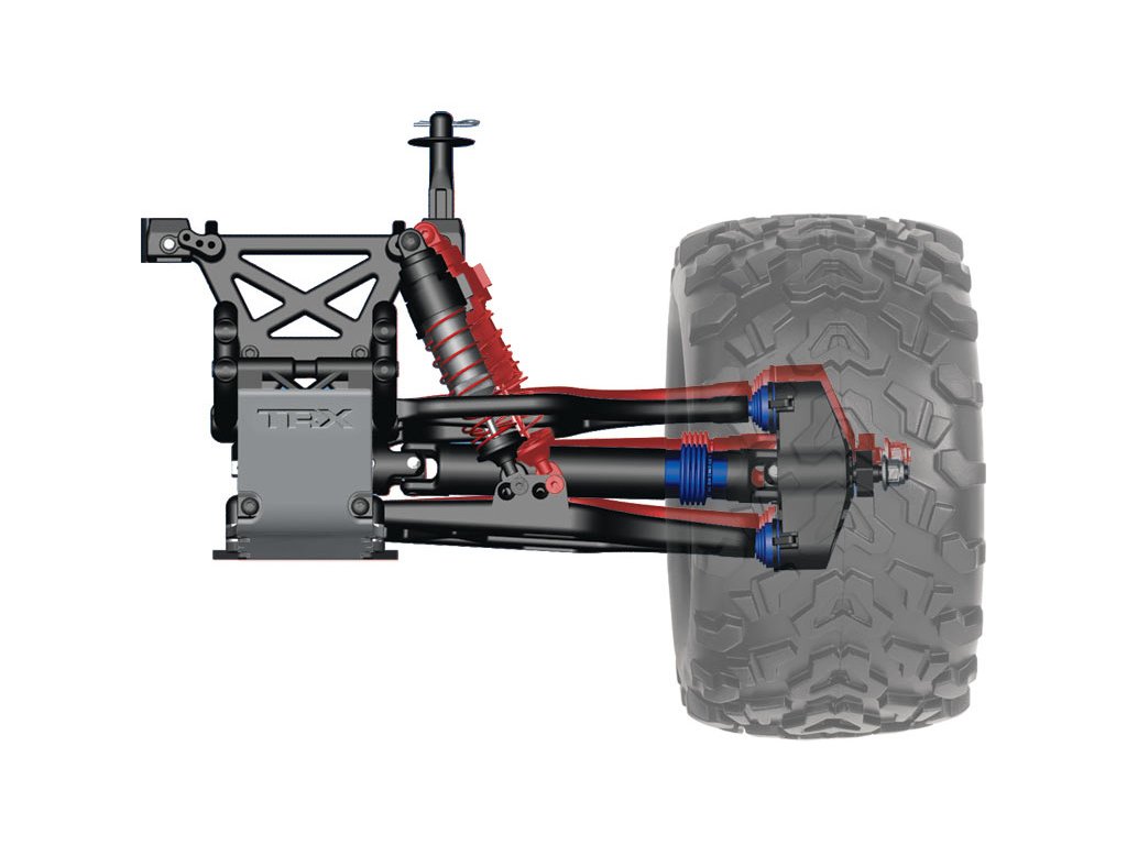Charakteristickým rysem modelu je nezávislé zavěšení kol pro výborné jízdní vlastnosti. Robustní hnací hřídele jsou opatřeny kardanovým kloubem. Proti nečistotám jsou kardany i čepy těhlic opatřeny pryžovou prachovkou. Zavěšení je nastavitelné, můžete měnit upevnění tlumičů, sbíhavost, odklon apod.