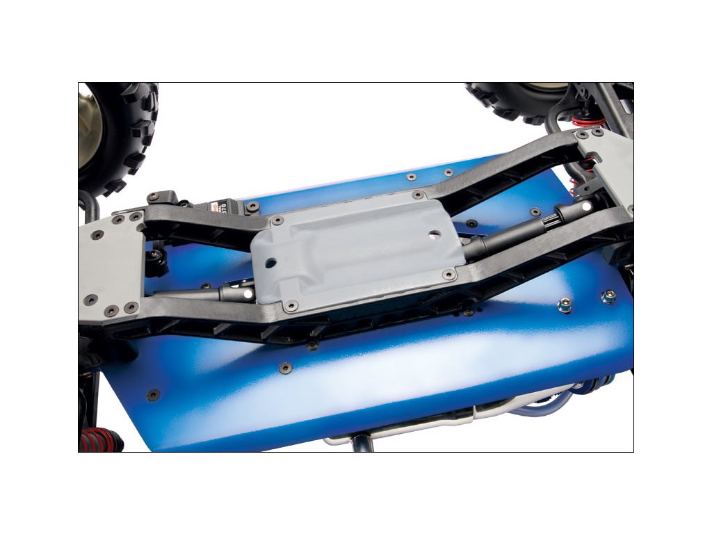 Vše je postaveno na robustním odlehčeném šasi ze 4 mm silného modře eloxovaného hliníku 6061-T6. RC auto má velkou světlo výšku, přes 10 cm, která mu umožní spolu s náhonem 4WD projíždět i tím nejextrémnějším terénem. Jednotlivé komponenty jsou na šasi rozmístěny tak, aby byla váha co nejlépe rozmístěna.