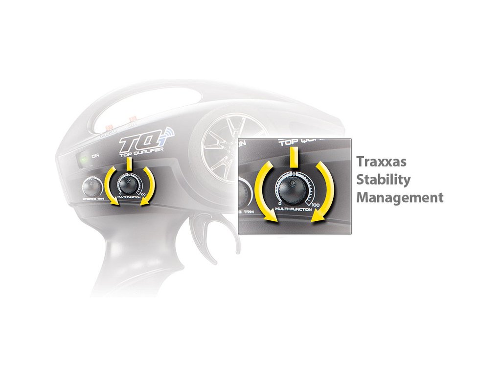 Stabilizační systém Traxxas Stability Management (TSM) umožňuje zažít nejen výkon, rychlost, zrychlení a projíždění zatáček extrémní rychlostí, ale zaručuje mnohem jednodušší řízení a kontrolu na kluzkých površích jako je prach, hladký beton nebo dokonce led a sníh.