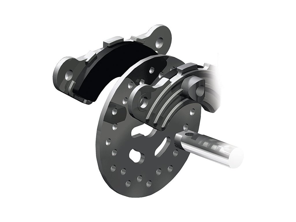 Brzdění RC modelu je realizováno pomocí velké kotoučové brzdy, která přibrzdí všechna kola. Disk průměru 42 mm se otáčí mezi dvěma polokovovými brzdovými destičkami.