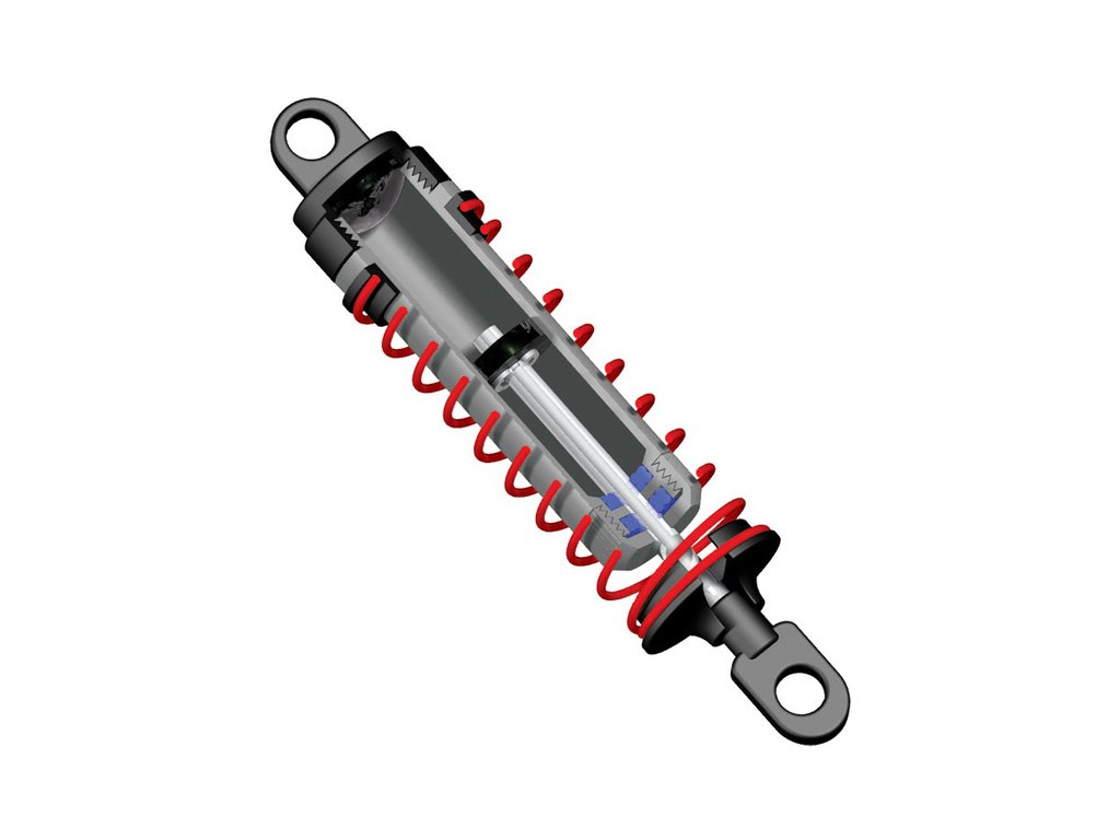 Olejové tlumiče využívají technologii O-kroužků pro utěsnění. Jsou plně nastavitelné se širokou škálou olejů, pružin a pístů. Předpětí pružin lze nastavit pomocí podložek. Model obsahuje celkem osm tlumičů (2 pro každé rameno).