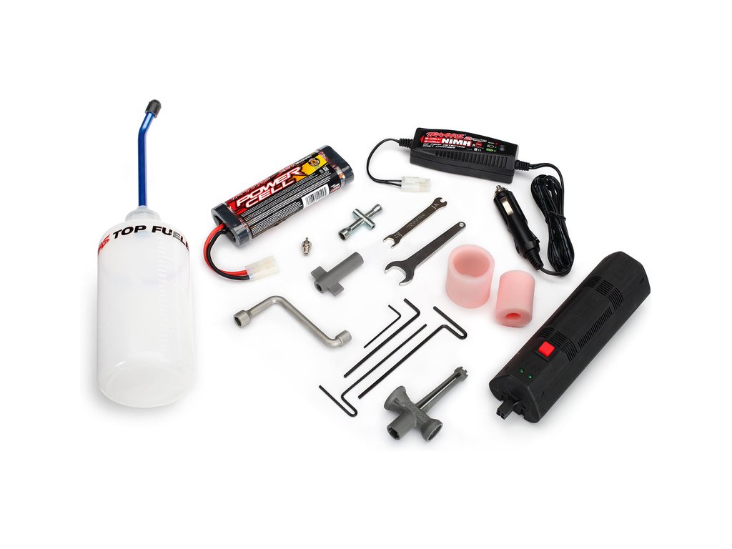 Revoluční startér spalovacích motorů Traxxas EZ-Start znamená konec pracného tahání za startovací šnůru, nabíjení žhavení, a pod. Startér EZ-Start sestává z elektromotoru, který přes převodovku a jednocestné ložisko roztočí klikovou hřídel spalovacího motoru. Vývody z motoru a žhavicí svíčky jsou vyvedeny do konektoru, do kterého se připojuje externí jednotka Traxxas EZ-Start. Externí jednotka EZ-Start sestává z NiMH akumulátoru a stabilizovaného zdroje pro napájení žhavicí svíčky. Startování je jednoduché a skvěle funkční - pomocí jednoho tlačítka. Samozřejmostí je ochrana proti přetížení motoru a indikace vadné žhavicí svíčky.