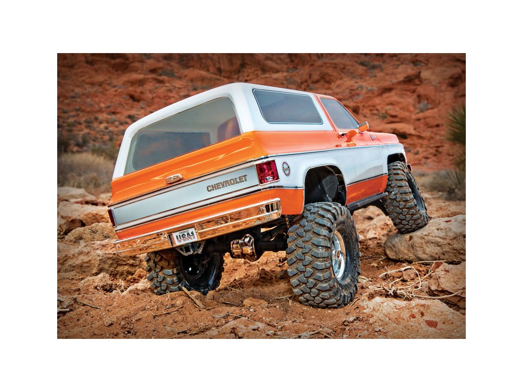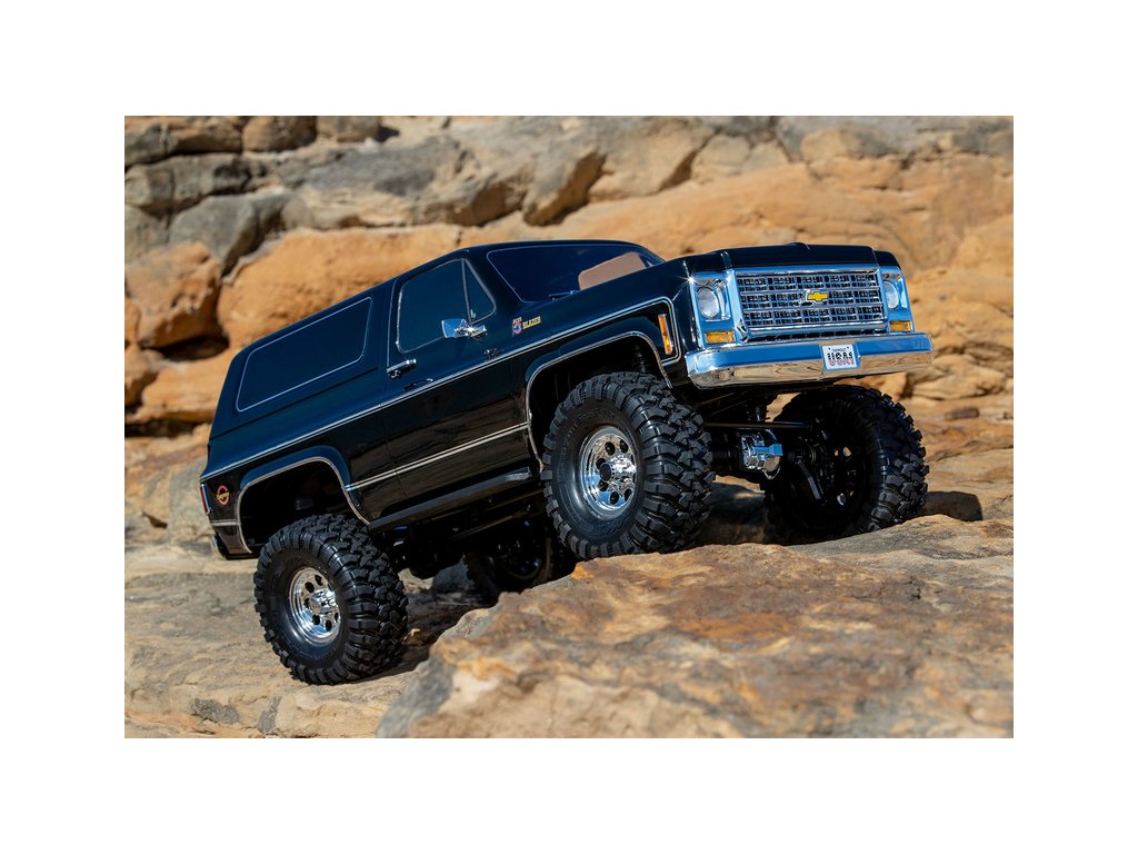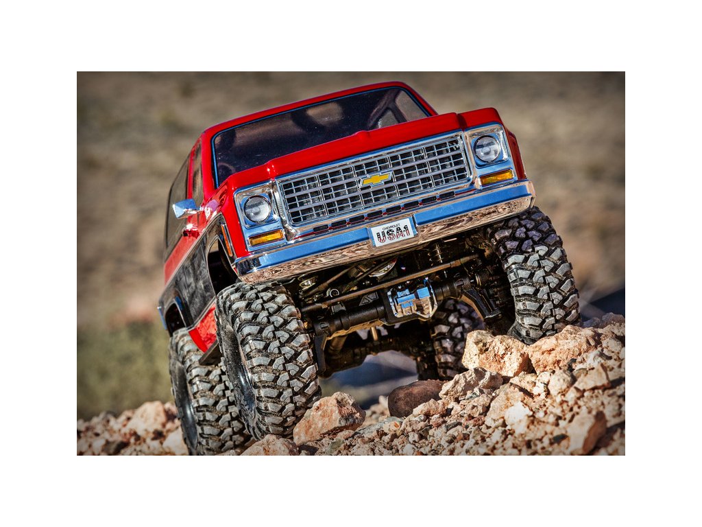 Expediční RC model auta TRX-4 Chevrolet K5 Blazer 1979 s výbornými schopnostmi v terénu a nově s detailní bezsponkovou karoserií s klasickým vzhledem ze 70-80 let. Osvědčené šasi TRX-4, dálkově řízená 2rychlostní převodovka, uzávěrky diferenciálů a portálové nápravy.