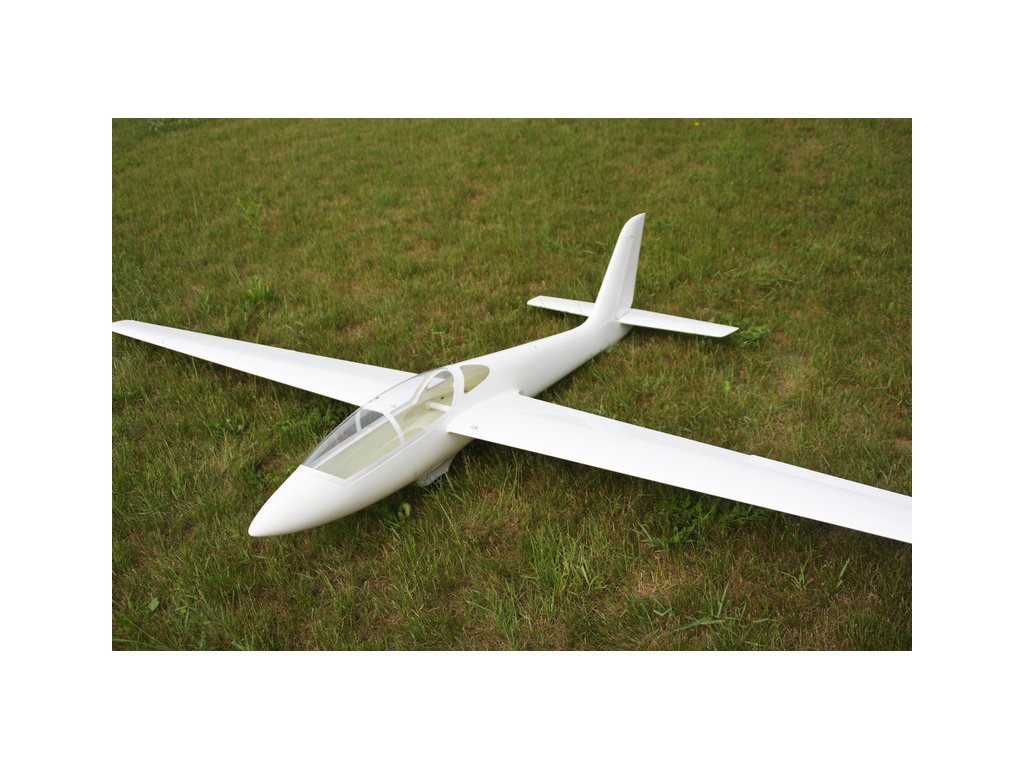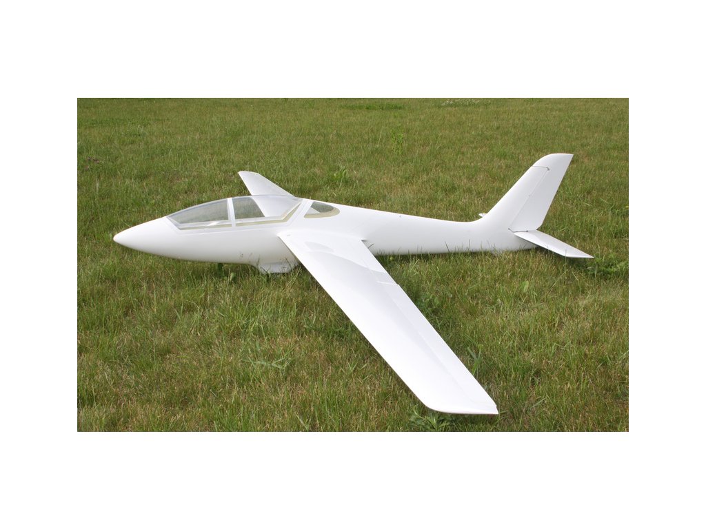Populární polský akrobatický kluzák MDM-1 FOX v měřítku 1:4 o rozpětí 3,5m od Robbe jako kompozitový model s bílým zbarvením s laminátovým trupem a sendvičovým vakuovaným křídlem do forem. Křídlo má vysokou pevnost díky uhlíkovým výztuhám konstrukce.
