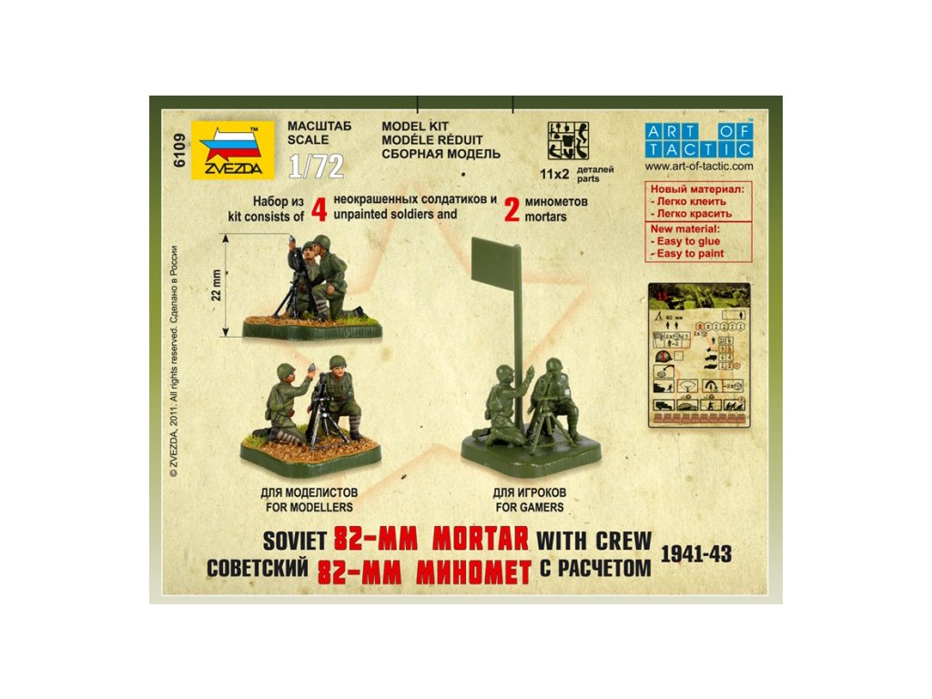 Sada figurek Zvezda 6109 – ruský 82-mm minomet s vojáky doplňujících plastikové modely. Velikost figurek je 1:72; 2,4 cm. Balení obsahuje 22 dílků.